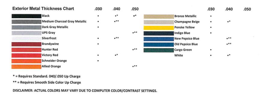 All colors shown are available for Trailers. Please Note: Colors are representations of the actual colors, but will vary with monitor display settings.